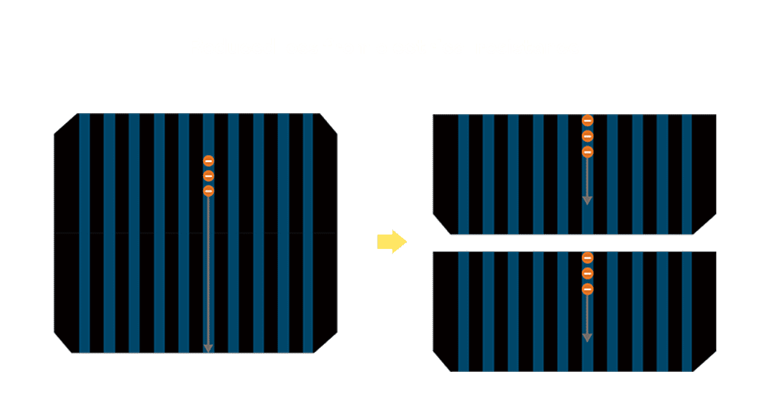- 多条电极栅结构,,可有效降低外力对于电池的影响,,,限制电池隐裂 (Micro-cracks) 范围,,,防止电流传输路径 (Current distribution) 之损坏进一步扩大。。