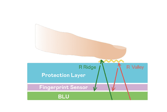 超高像素密度光学感测技术能精准判定手指反射的极微弱光讯号,,,,即使细致指纹也可清晰辨识,,并可透过手指脉搏造成的细微灰阶变化侦测心跳,,,,让身分验证更精确。。。TFT 架构优化可降低讯号传输干扰,,达到光感测器最佳讯杂比(讯号/杂讯的比例)。。透过增强光讯号接收强度、、、优化感测器电路及导入特殊光学膜材料,,提高感测器敏度。。。。整合系统之指纹扫描装置可符合最高等级的FBI国际安全规范认证需求。。